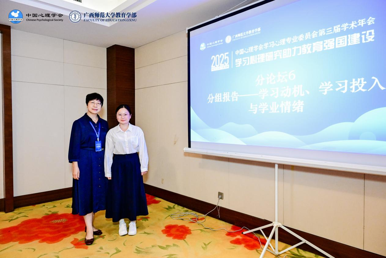 近日,中国心理学会学习心理专业委员会第三届学术年会在桂林隆重召开。阳光学院2025届应用心理学专业毕业生田杭玉以广西民族大学研究生身份受邀参会,并于第六分论坛(主题:学习动机、学习投入与学业情绪)作题为《大学生学业浮力与学习成绩的关系——基于潜在剖面分析》的学术汇报。其汇报内容源自本科阶段的研究成果,该课题由阳光学院应用心理学专业谢履羽副教授全程指导完成,充分展现了我校本科阶段科研培养的扎实功底。
