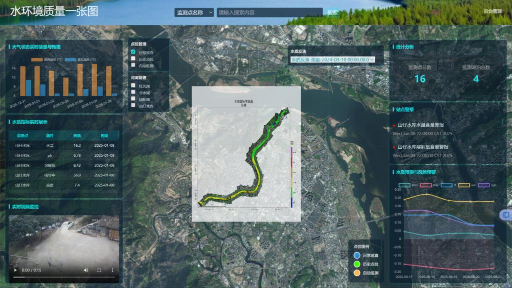 “以前监测河湖富营养化,要派人实地采样、实验室分析,不仅成本高、耗时长,还很难实现全流域覆盖。”黄风华教授介绍,团队精准瞄准这一生态治理痛点,把人工智能技术搬进了水环境监测领域。通过自主研发的深度学习算法,结合卫星遥感、无人机航拍、地面物联网监测的多源数据,打造出“水环境质量一张图”管理平台,构建起高效的“空天地”协同监测体系。