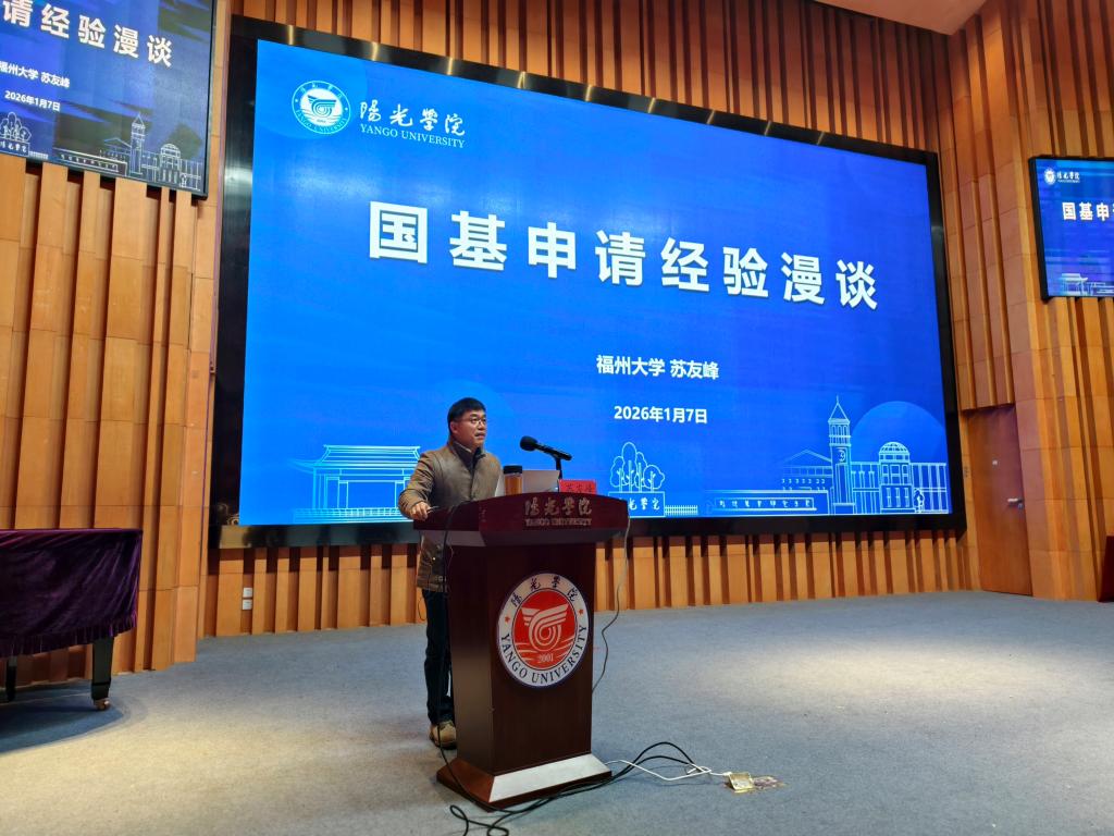 1月7日,我校在正德楼音乐厅举办第五期科研培训专题会。本次培训特邀福州大学博士生导师苏友峰教授担任主讲嘉宾,林述温副校长主持会议,全校工科类教师参会。