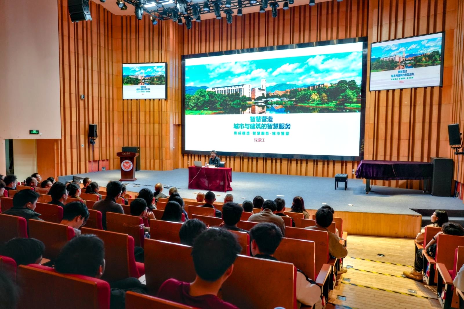 沈院士以《智慧营造-城市与建筑空间的智慧场景创造》为题开启首场讲座。讲座内容从智慧营造理论体系、智慧场景打造、能源智联与碳中和三大维度展开分享,结合前沿研究与实操案例,解读智能建造与建筑工业化协同发展要义,阐释“好房子”绿色低碳智能安全的核心特征,展示低空技术、数字孪生等技术的创新应用,分享团队在零碳建筑、智慧社区等领域的突破成果,让师生对智慧建造与空间规划的融合发展形成系统前沿的认知。