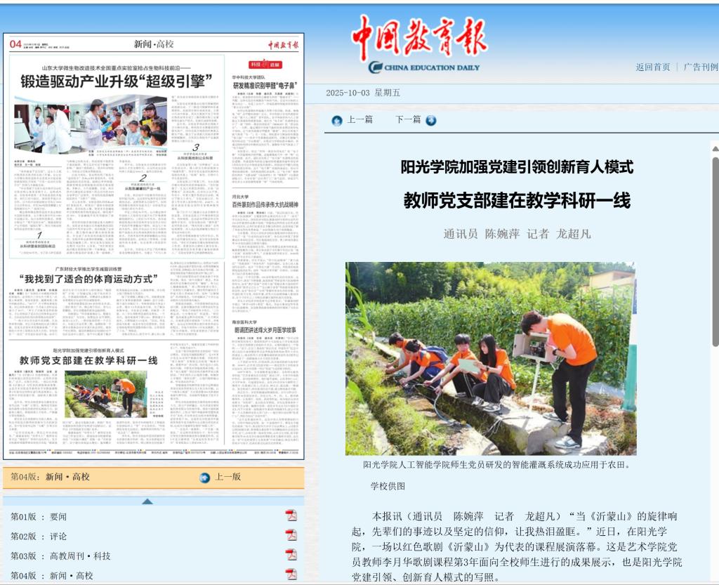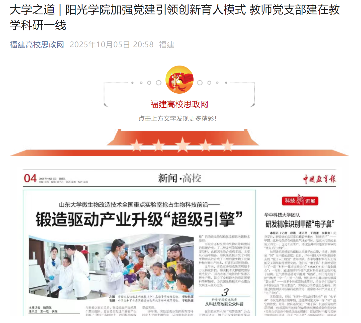 中国教育报、福建高校思政网:大学之道 | 阳光学院加强党建引领创新育人模式 教师党支部建在教学科研一线