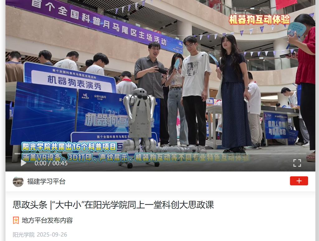 学习强国:思政头条 |“大中小”在阳光学院同上一堂科创大思政课