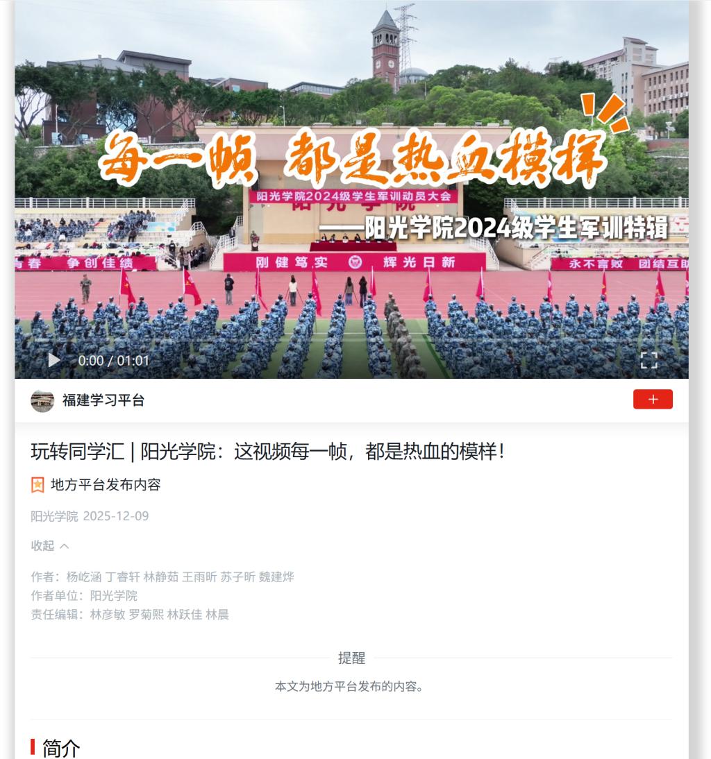福建教育网:英雄事迹再现阳光学院主题思政课