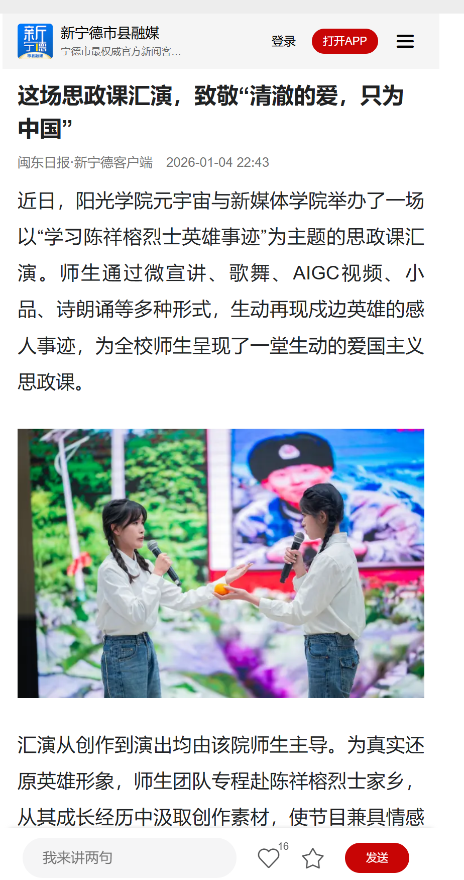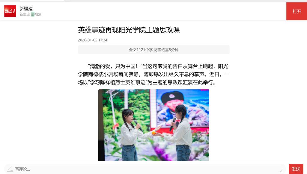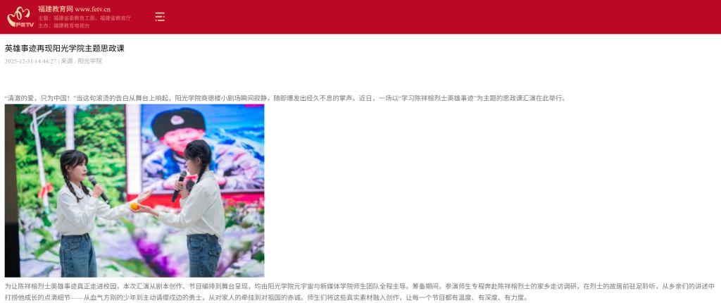 光明日报、中国教育新闻网、新福建等媒体:这场思政课汇演,致敬“清澈的爱,只为中国”
