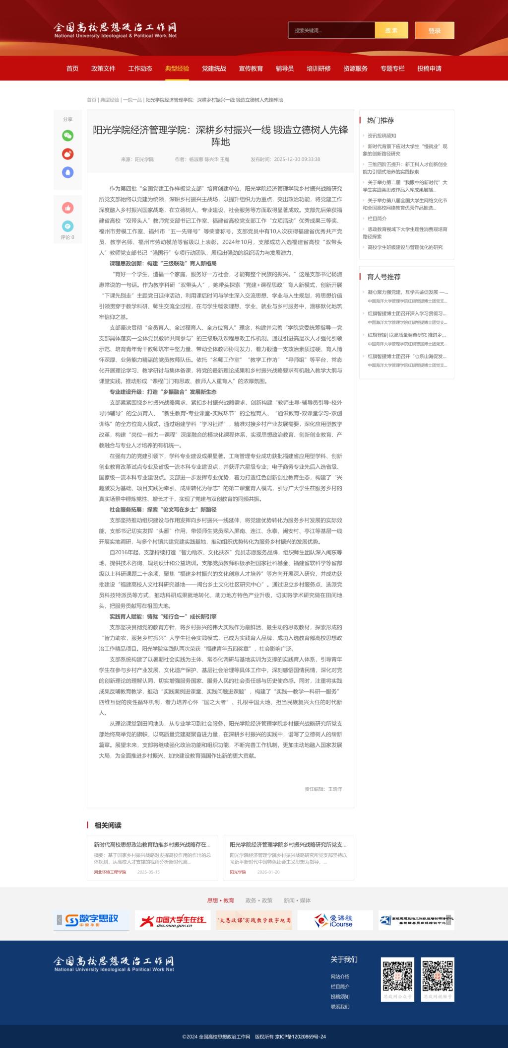 全国高校思想政治工作网:阳光学院经济管理学院:深耕乡村振兴一线 锻造立德树人先锋阵地