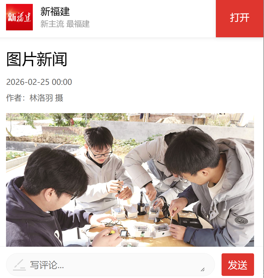 寒假期间,我省多所高校派出学生实践队走进各地田间地头,围绕智慧农业、乡村文旅、研学体验等乡村发展核心需求开展服务。图为阳光学院实践队在闽清县塔庄镇秀洋村搭建智慧农业全周期智能闭环系统,该系统可根据土壤湿度自动触发精准灌溉,并能同步对霜冻风险和管路故障进行实时预警。