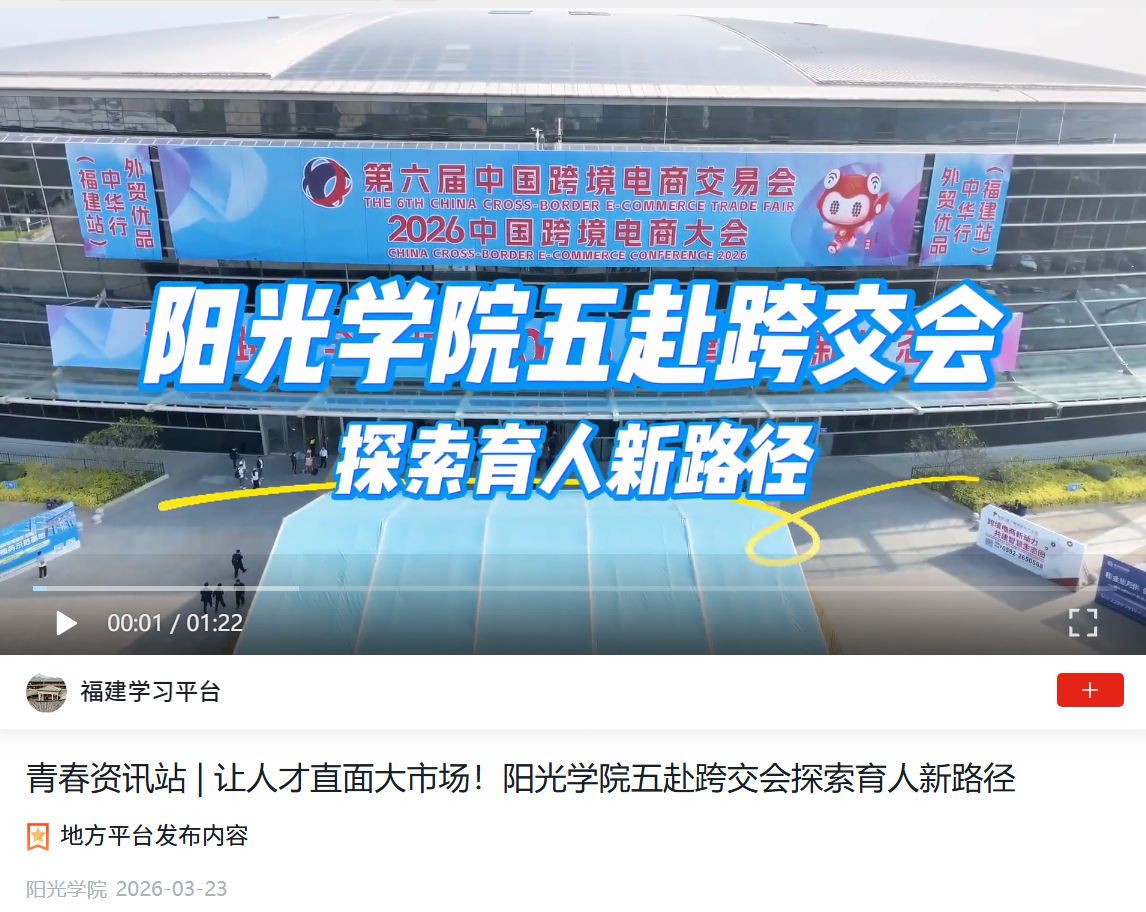 学习强国:青春资讯站 | 让人才直面大市场!阳光学院五赴跨交会探索育人新路径