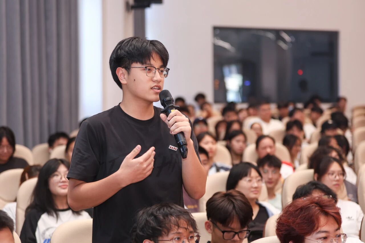 现场交流互动环节中,同学们围绕“团队协作”“职业发展规划”“劳模精神”等问题踊跃提问,林玉登先生结合自身经历耐心解答,鼓励大家“找到热爱的方向,沉下心练精本事,一辈子做好一件事,用劳动创造价值。”